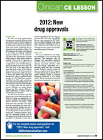 2012: New Drug Approvals- Identify the new therapeutic agents approved for use in 2012. Describe the newly approved agents’ indications and practical considerations regarding their use in a clinical setting. Compare the new agents to the existing therapies available. the role of the new agents and their place in therapy.
