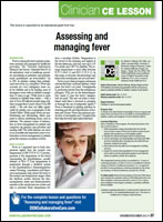 Assessing and Managing Fever- Define temperature ranges associated with fever, list the most common causes of fever and be able to assess fever in patients with special focus on the pediatric patient. Describe the various techniques used to measure fever. List the advantages and disadvantages associated with different fever measuring sites, including oral, ear, behind the ear, forehead, underarm and rectal. Name factors that may affect fever management, including accuracy. Explain the current clinical guidelines for fever management and be able to provide appropriate guidance and treatment options to patients, parents and caregivers.